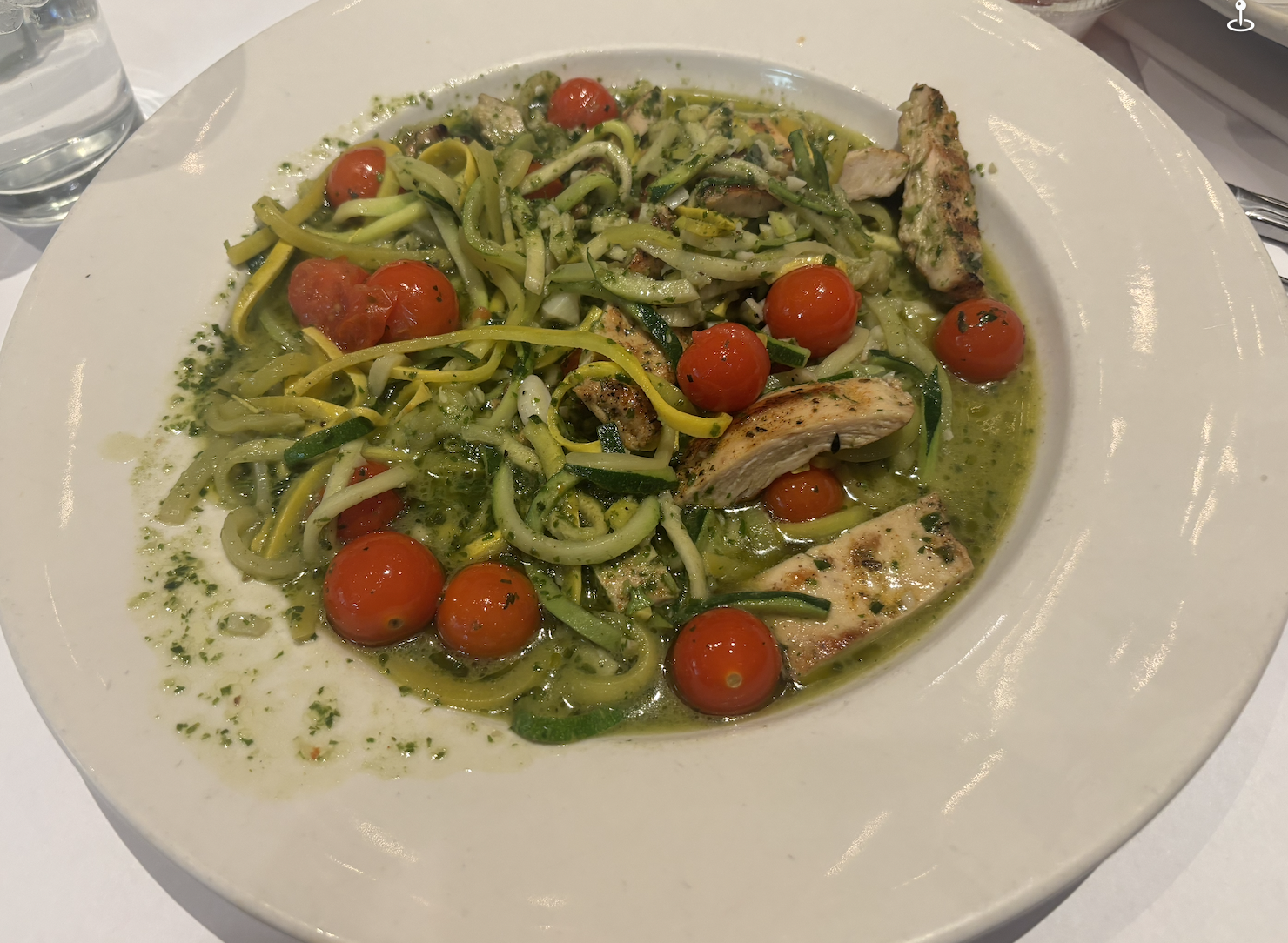 Considering that this was a group event, I was amazed at the variety of choices available for lunch.  It was difficult to decide, but with the help of others who have frequented Caffee Amici regularly, I was able to make a decision – Zucchini noodles, Chicken and Pesto was delicious!  The house salad and garlic bread were great as well.