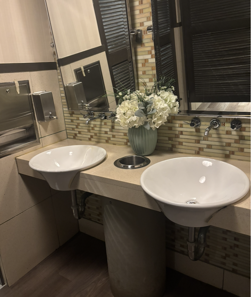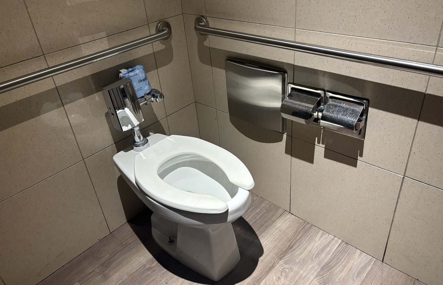 Multi-stall restrooms have a large, accessible stall and accessible sinks. It is so nice to see that soap, towels, etc. are at a good level for a wheelchair user. Thank you to the people who designed it.