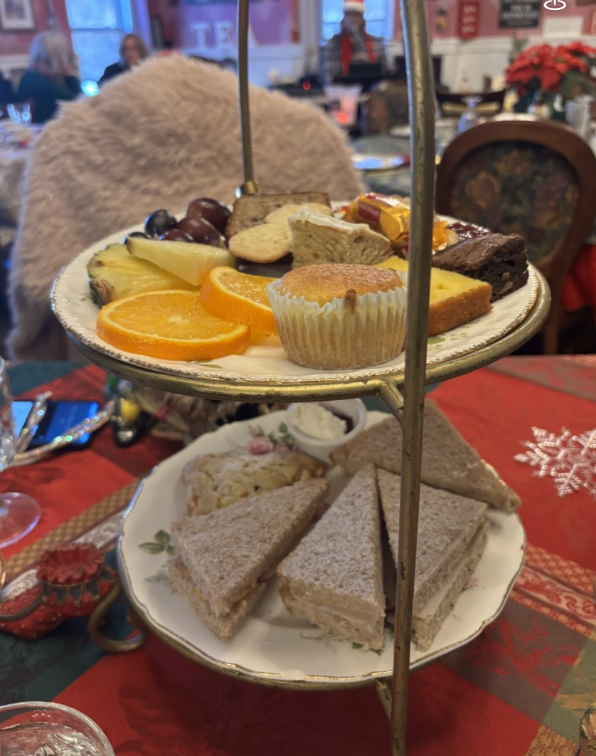 When we finally got around to ordering, we had a large variety of items to choose from, , from tea service to traditional lunch items.  We opted for the traditional tea service, which was lovely. It’s nice that there are options to choose from. The large variety of teas made it difficult to decide.. We loved that, whichever tea we choose, the ceramic teapot came on a warmer, which kept the tea hot for our entire meal.