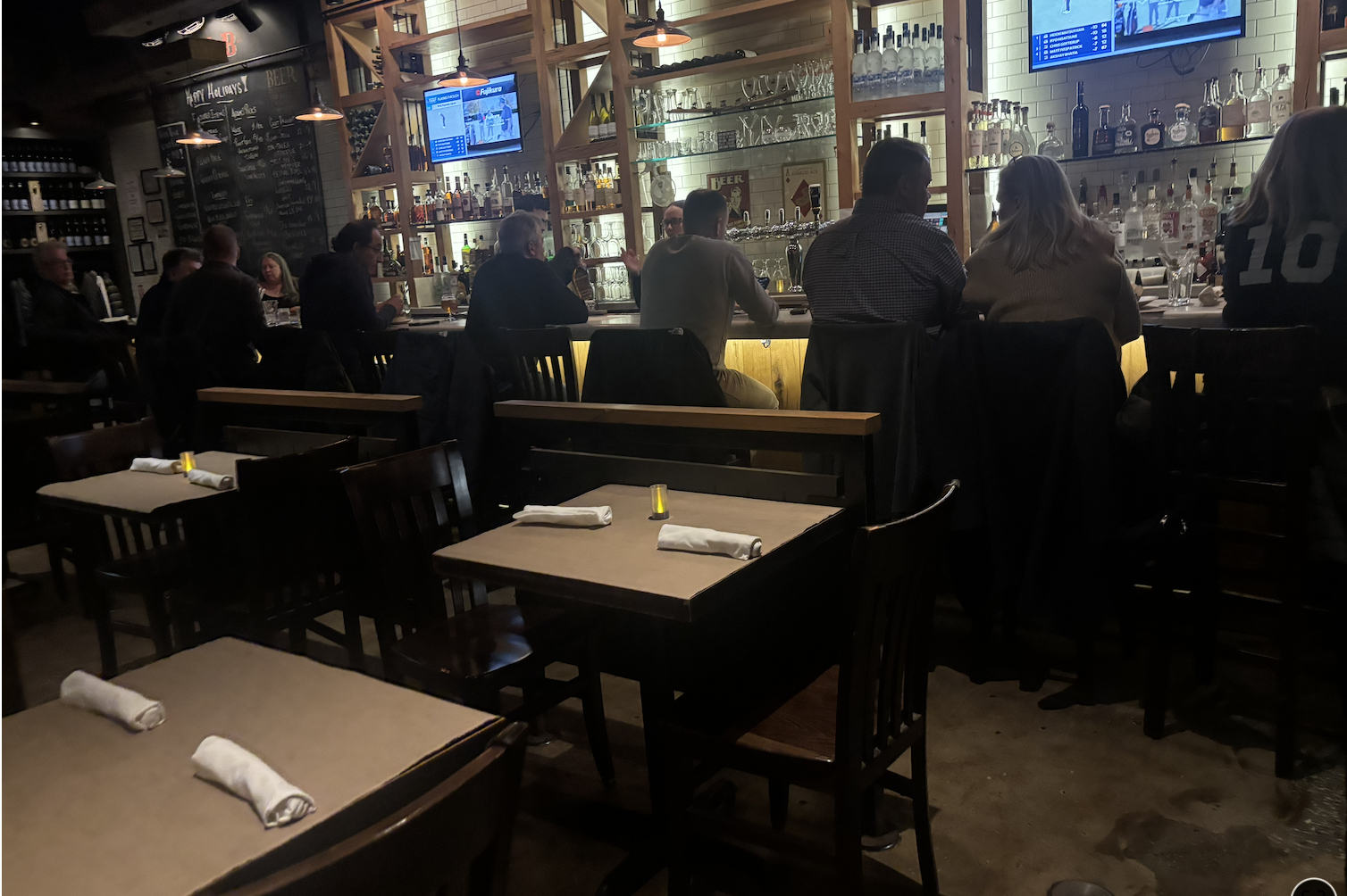Places to sit:  tables, banquettes, full-height bar